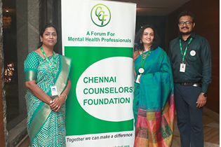 Chennai Counselors Foundation (CCF) is an association for Mental Health Professionals founded by Dr. Saras Bhaskar and Ms. Brinda Jayaraman in the year 2004. It is a registered association under Tamil Nadu Societies Act. From its inception, CCF is working for the welfare of Mental Health Professionals. Various Guest Lectures, Seminars, Workshops, Consultation meetings with governmental and non-governmental agencies.